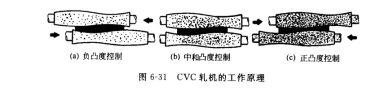 ③S形曲線加上軸向移動,使整個軋輥表面間距發(fā)生不同的變化,如圖 6-31 所示,從而改變了帶鋼橫斷面的凸度,改善了板形質量。