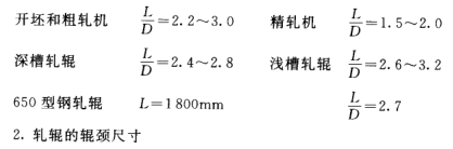 輥徑直徑d和長度l與軋輥軸承形式及工作載荷有關,由于受軋輥軸承徑向尺寸的限制,一般按經(jīng)驗數(shù)據(jù)選取