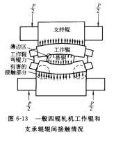 HC 軋機(jī)是一種高性能輾型凸度控制軋機(jī),這是具有軋輥軸向移動(dòng)裝置的軋機(jī)。這種軋機(jī)的輥縫是剛性輥縫型。其基本出發(fā)點(diǎn)是通過(guò)改善或消除四輥軋機(jī)中工作輥與支承輥之間有害的接觸部分,來(lái)提高輾縫剛度的,如圖6-13 所示。