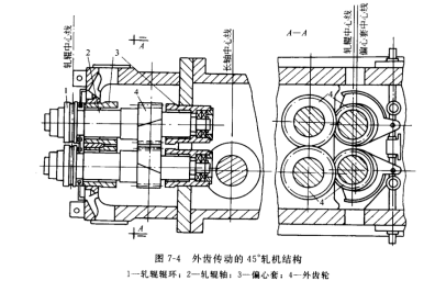 嚙合中心距有微小變化,但總的看來,目前認(rèn)為外齒傳動的45°軋機(jī)優(yōu)點(diǎn)較多。